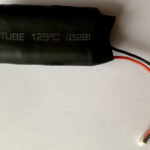 Finally, here’s a photo of the completed battery pack enclosed in thick shrink wrap. The shrink wrap is applied as a cylinder, rather like part of a bicycle inner tube, then heated with a hot air gun (a hair dryer is NOT suitable because it can not reach the required temperature). Care needs to be taken not to overheat the wires.
